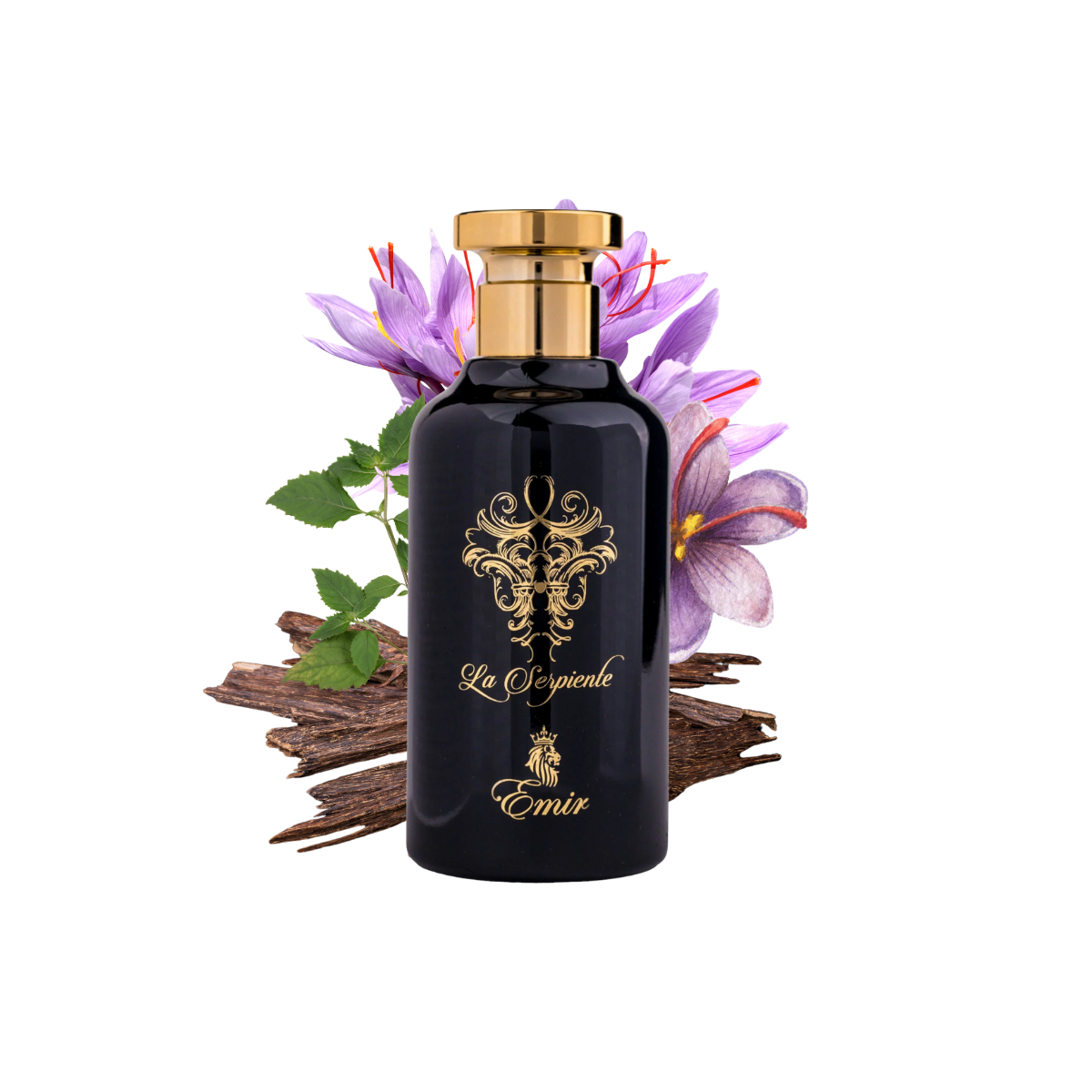 Savor the essence of luxury with our magnificent scent La Serpiente Emir, a well-balanced fusion of the best components. At the top, an alluring scent of agarwood (Oud) fills the air, evoking a sense of refinement and mystery. The sensual aroma of saffron, which has a cozy and exotic appeal, takes center stage when the heart opens. Ultimately, the scent develops into a deep, earthy Patchouli base, providing a long-lasting impression of refinement and depth.