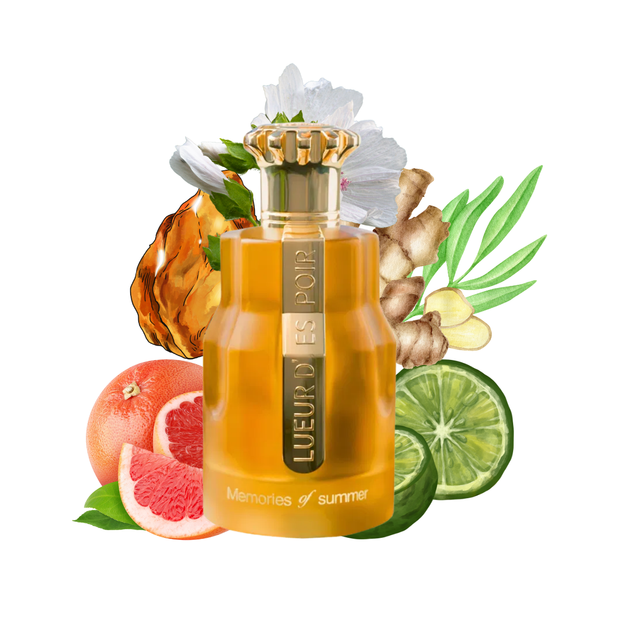 In LUEUR Memories of summer, A warm heart of ginger adds a touch of spicy intrigue, evoking sun-warmed skin and carefree laughter.