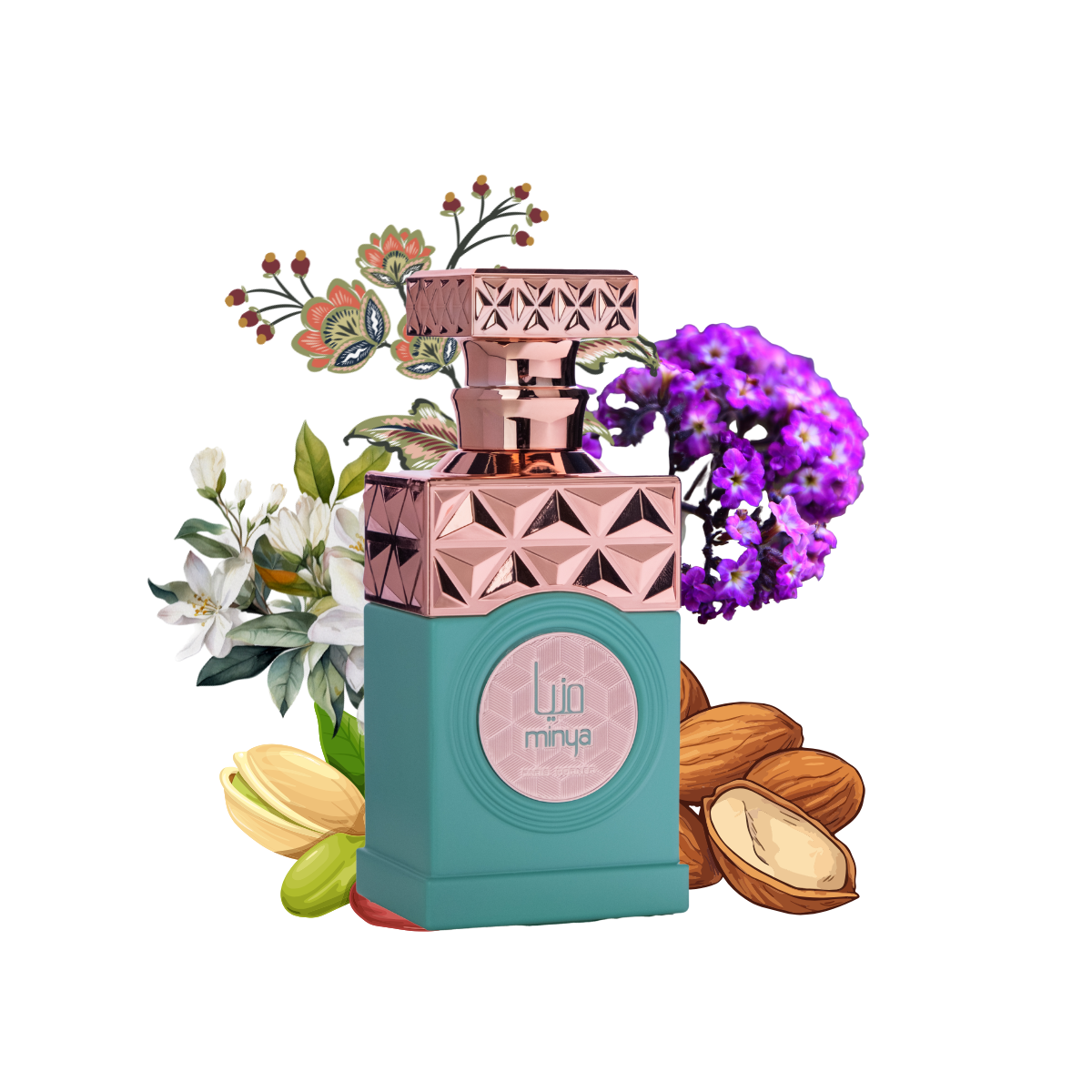 Minya is a unisex fragrance that exudes luxurious warmth and irresistible allure, crafted for those who appreciate the finer things in life. The journey begins with a rich, inviting blend of pistachio and almond, creating a velvety, nutty sweetness that envelops the senses like a soft embrace.
