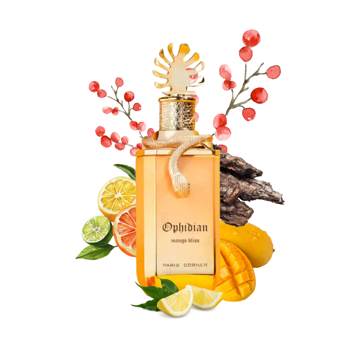 The Ophidian Mango Bliss Perfume by Paris Corner is a unisex fragrance that features a fruity and woody scent. It comes in a 100ml (3.38 fl oz) EDP bottle, perfect for everyday use. Delight in the zesty blend of mango, ginger, lemon and red berries that will leave you feeling refreshed and invigorated.