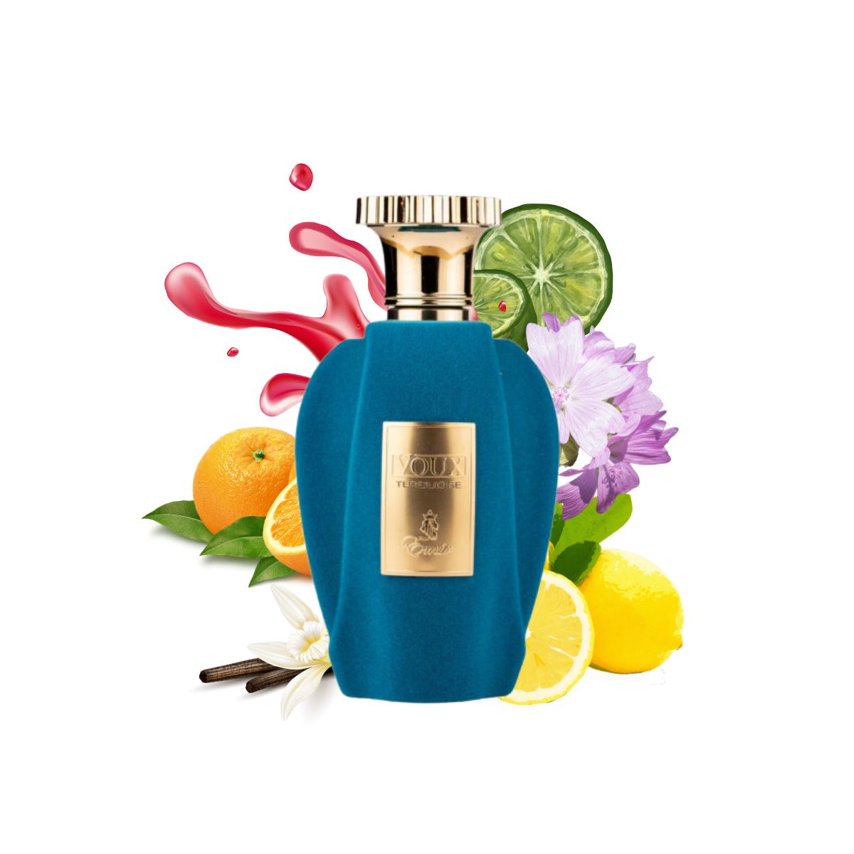 With the vibrant zest of orange and lemon bursting forth, our scent Voux Turquoise Emir excites your senses with a reviving citrus attraction, promising a wonderfully aromatic experience. The fragrance possesses a refined yet carefree charm, with rich fruity undertones that skillfully combine with the alluring elegance of bergamot in its middle. As the scent grows, the air is filled with the creamy warmth of vanilla, which feels comforting and reassuring. Finally, a seductive mix of musk and amber grounds the fragrance and leaves a trail of sensuality and timeless appeal. This harmonious blend creates a perfume that is both appealing and invigorating, suitable for any environment.