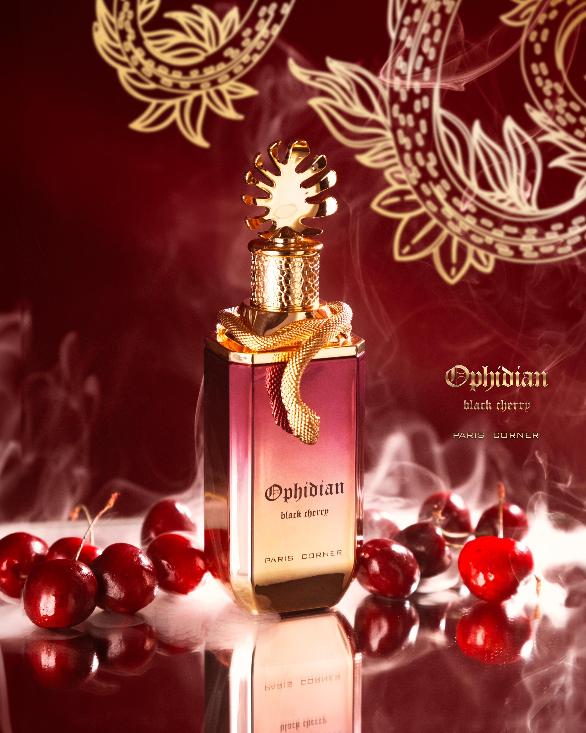 The Ophidian Black Cherry Perfume by Paris Corner is a high-quality unisex fragrance that combines burning cherry, raspberry, and bergamot with palo santo, tonka bean and guaiac wood. The scent starts with a deliciously sweet burning cherry aroma that's both refreshing and alluring. It's followed by juicy raspberry notes that add an extra touch of fruitiness to the perfume.