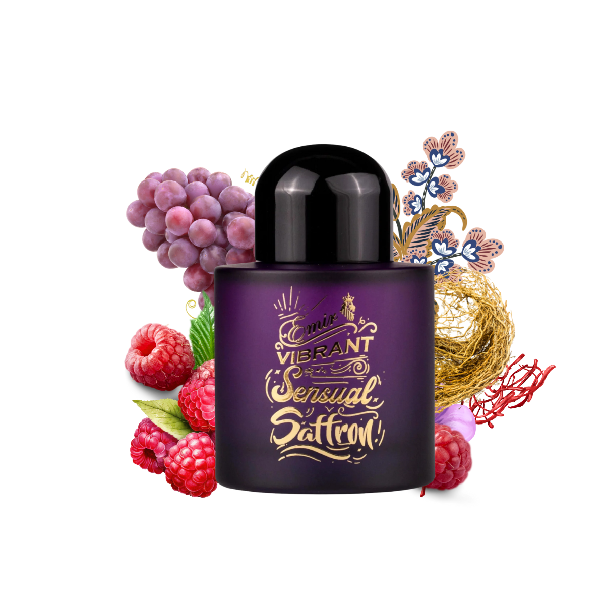 Vibrant Sensual Saffron Emir is a captivating fragrance that opens with a lively blend of saffron, juniper berries, and the zest of Chinese grapefruit. The heart reveals a bold fusion of leather and black violet, exuding a deep, seductive allure. As it settles, the scent unfolds with a rich base of raspberry, cashmeran, and vetiver, leaving a lasting impression of warmth and sophistication. Best for those who appreciate a fragrance that is both bold and refined.